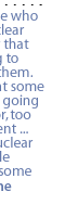 I would counsel people who are worried about nuclear weapons not to worry that the Russians are going to think we're attacking them.  They should worry that some Russian somewhere is going to be too hungry, poor, too angry at his government ... and going to take a nuclear weapon, or  some fissile material, and use it in some illicit fashion.  That's the new danger. For me, the meaning of the Nunn-Lugar program will always be captured by the progress at Pervomaysk, which is a place in Ukraine where the brand newest U.S.S.R. ballistic missiles had just been deployed when the U.S.S.R. ended. We set out under Nunn-Lugar to eliminate those brand new missiles. And when we first went there, we helped with removing the warheads from the missiles. That was the first step. Then we went back again, and we removed the missile from the silo, the missile itself, and destroyed the missile. The third time we went back, we blew up the silo and restored the site. And the fourth time, and the time I'll never forget, is when Secretary of Defense Bill Perry, Russian Minister of Defense Pavel Grachev, and Ukranian Minister of Defense Valery Shmarov, planted sunflowers atop that place where a missile silo car[raige] holding a missile carrying 10 warheads, brand new ones, designed for us, had once been. Instead, they planted sunflowers. This wasn't a flight of fancy. It turns out, sunflowers is a cash crop in Ukraine, because they press the sunflowers to make sunflower oil. But once a missile field was turn into a sunflower field, those kind of results, that's real security for the dollar. ...