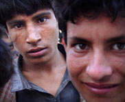 Two boys stare into the camera at a market in central Peshawar. (Photo by Marcela Gaviria)