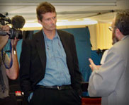 Producer Martin Smith interviews Sheik Omar Bakri Mohammed. (Photo by Marcela Gaviria)