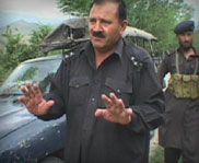 Armed guard stops the FRONTLINE team from going into the tribal areas.