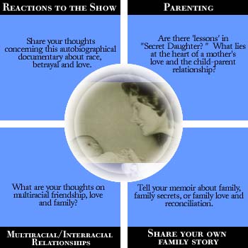 discussions | blurred racial lines | audio stories | june's family tree | bi-racial portraits | how to search family trees | readings | reactions