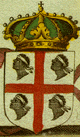 Due likely to the tradition attached to Sardinia's arms, these insignia have been all too facilely explained as the grizzly prize of some crusader conquest. The four African heads each displayed in one of the four quarters created by the cross on the shield are referred to by an early motto associated with this island's crest as 'trophea.' The traditional explanation is they represent the four Moorish emirs who were defeated by a king of Aragon sometime in the 11th century. (The possibility of a more probable approach to these insignia will be raised further on.) Such an interpretation would, of course, be more than welcome today, especially in the face of establishment attempts to portray as white the Islamic power that was able to withstand three successive waves of European invasions.