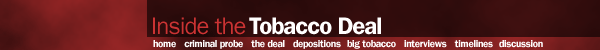 home .  discussion .  quiz .  the criminal probe .  will there be a deal? .  a look at the depositions .  big tobacco - what's at stake .  interviews