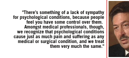 A: Certainly that's very true in the past, and it persists today. There's something of a lack of sympathy for psychological conditions, because people feel that you have some control over them.
