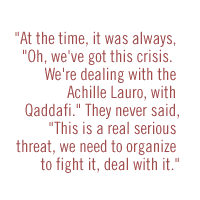 Well, the Achille Lauro was looked at as a big victory, because they got the people who supposedly were behind it. It was based on good tactical intelligence at the moment. But, it was one incident, and as I recall one person died in that hijacking of the cruise ship. So, it was again quick action. There was a lot of celebration. But, again, it's no overall solution.