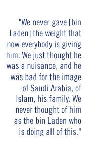 But bin Laden himself [went] to the royal family when the invasion of Kuwait took place, and said, "We will defend Saudi Arabia," as I understand it, meaning he and the Afghan Arabs or the Saudis. ...