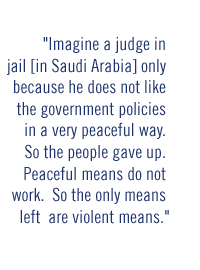 Yes, and that's explained very much by the continuous crackdown on the peaceful opposition, which started after the Gulf War -- a massive crackdown which reached its climax in 1994, where even very senior, respectable scholars were thrown into jail, university professors, judges. Imagine a judge in jail only because he does not like the government policies in a very peaceful way. So the people gave up. Peaceful means do not work, so the only means left over are violent means.
