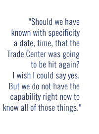 Yes. The point is, should we have known with specificity a date and a time and a place that the Trade Center was going to be hit again? The answer is that I wish I could say yes. But we do not have the capability right now to know all of those things. ...