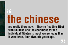 a:  Well when I was in Tibet it's fair to say that things have gotten worse than they were in the last several years. I think the Chinese are applying pressure and tightening the screws and the persecution is increasing. So if you look at it in the big picture, there were times that the Chinese were there and perhaps things were getting a little bit better. Now the Chinese are really there -- they're flooding Tibet with Chi-, Chinese and the conditions for the individual Tibetan is much worse today than it was three, four, five, six years ago.