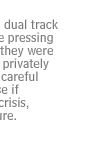 This Administration tried to run a dual track policy: on one track saying publicly that they were pressing the Iraqis as hard as they could; they were fully supporting UNSCOM and the inspection missions; they wanted aggressive inspections. While privately arguing that UNSCOM should be careful in these days and not provoke a crisis, because UNSCOM, if UNSCOM became the focus of a crisis, the Security Council would fracture.