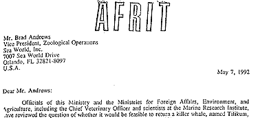 We are pleased that you have consulted with Icelandic authorities on this matter. We trust that our response fully and finally disposes of any questions regarding the return of killer whales to their point of collection in Icelandic waters.