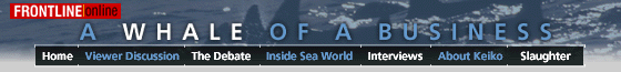 home .  viewer discussion .  the debate .  inside seaworld .  interviews .  keiko .  slaughter