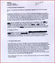 In 1995, McWane subsidiary Ransom Industries bought Tyler Pipe Company in Tyler, Texas. Federal officials say that since its purchase by McWane, Tyler Pipe has stood out as a repetitive violator of safety rules. In this report, obtained under the Freedom of Information Act, federal inspectors from the Occupational Safety and Health Administration (OSHA) detail conditions at the plant, including scarred and disfigured workers, puddles of molten metal on the floor, and poorly lit work areas.