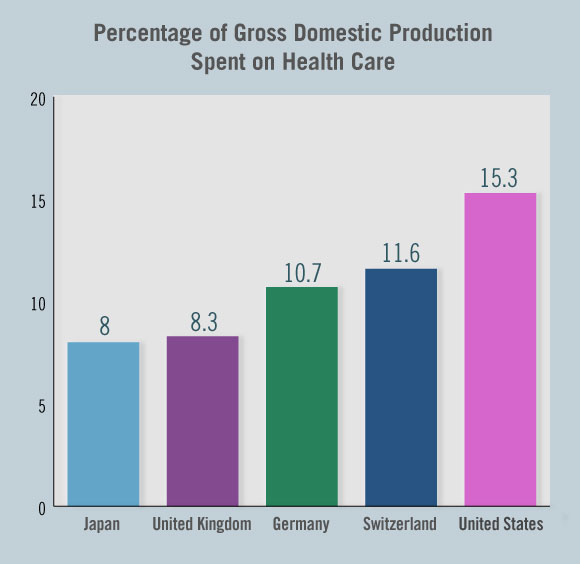 These charts draw upon data from a 2007 report by the Organisation for Economic Co-operation and Development (OECD), which collects economic statistics on its 30 member countries. Taiwan, one of the five countries featured in FRONTLINE's report, is not included because neither the OECD nor the U.N.-based World Health Organization (WHO) track statistics for the island nation. Click on the tabs below to view the corresponding chart.