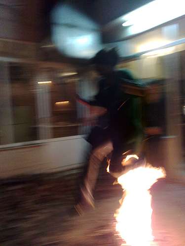 The first group of about 40 packed in a few good rounds of fire-jumping before being shut down by police.