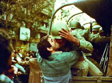 by the way, the picture is from the 1979 revolution, young protesters giving flowers to Shah's soldiers