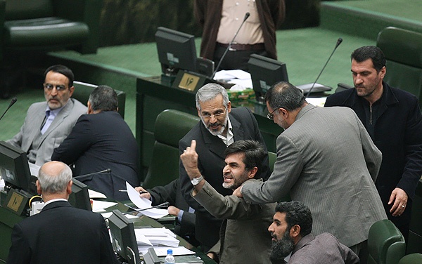 Photos: Principlist MP Mehdi Kouchakzadeh exhibiting passionate disapproval of Ali Larijani, Majlis speaker.
