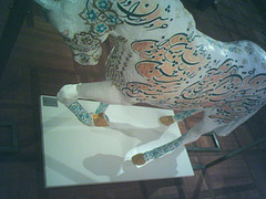 As we walked past the palace itself, where Sia pointed out the window to the Queen's personal offices and he described her collections of art -- Warhol, Picasso and impressionist painters -- music played surreally from an unidentifiable location, as if providing a soundtrack to Sia's reminiscences. It had been the first he'd visited this palace since his days working for the Shah, and had it been so long ago -- thirty years already? The steep, jutting peak of the Alborz rose above a row of trees, into a pitch blue sky. Sia had denounced the Shah's administration just before the revolution, and was forced to flee the country. When he returned, after the Shah was deposed, he'd been arrested. Somehow he had survived and forged another life for himself within the Islamic Republic. Much like Ahrari's method of driving, I imagined -- through his sheer force of will.
