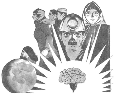 On the other hand, the Tudeh and other secular leftists used only nonreligious symbols and language. They welcomed unveiled women, demanded "land for the tiller," talked more in terms of class and capitalism, and described the occasion as a festival (cayd) and celebration (jashn) rather than as a solemn ceremony (marasm). Their banners appealed to "the workers of the world," not just to "workers." Their posters featured broken chains, the color red (flags, stars, and carnations), and unveiled female workers as well as brawny male proletarians with felt caps. The Fedayin posters showed the planetary system, to represent science as well as universal humanity, and the rising sun, as a symbol of a new age, a symbol appropriated from the nineteenth-century labor movement in Europe. The Tudeh revived its 1940s slogan "Bread for All, Education for All, and Health Care for All." Workers' House emphasized the rights of those without work, demanding unemployment benefits as well as programs to create jobs. The secular left papers published poems full of Marxist imagery: Lenin, red flags, October revolutions, the dawn of a new industrial age, and "International Workers' Solidarity."