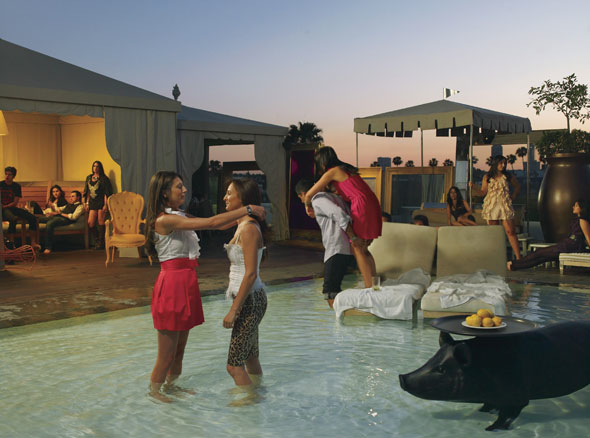 "For you, life is all about Gucci, Gabbana, Cavalli and Cristal. From BMWs and Bugatis, to Mercedes and Movado -- money is no object." It seems those who might be interested in a show about the cultural assimilation of Iranian Americans will have to watch it through the filter of a spoiled 20-something group obsessed with materialism, body waxing, excessive makeup, and the sort of behavior that will be nothing less than shocking to a community that, for the most part, is morally uptight and clings to sexist double standards. On the other hand, one could argue that this is proof that Iranian Americans have finally arrived. They are now receiving the same sort of treatment as other stereotyped groups, as well as validation, however perverse, that they indeed constitute an established ethnic minority in the United States.