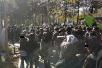 [ on the scene ] The first day of commemoration for those killed this past Monday again saw sizable demonstrations, although the number of protesters on the streets of Tehran was about a third of the figure involved in the 25 Bahman events. The regime's forces were out in full strength, however, numbering in the tens of thousands. Many others were stationed in garrisons and Basij bases on standby in case an emergency situation developed.