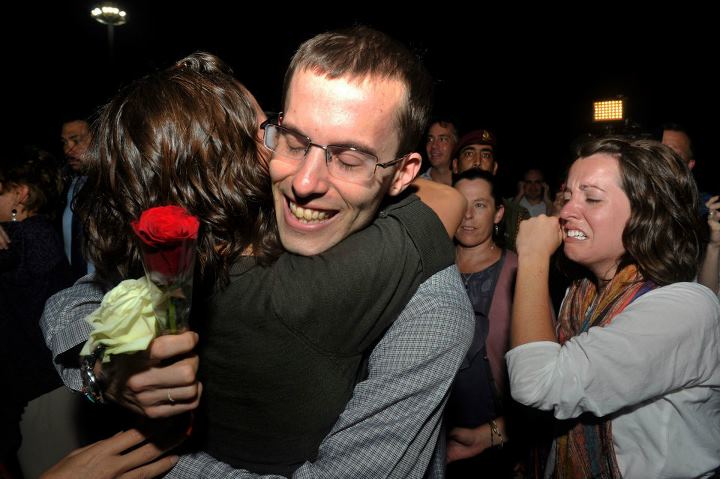 10:45 a.m. ET At about 2:15 p.m. Tehran time, Fars news announced that the order for their release was signed and that the two men would be handed over to the Swiss Embassy at 3 p.m. Tehran time. According to CNN, which has a live blog, the government of Oman says the American hikers have been turned over to the custody of Omani officials and are on their way to the Arabian sultanate.