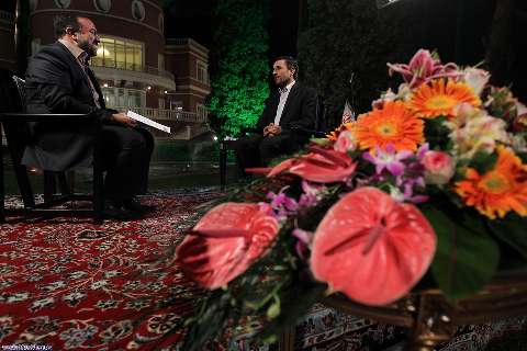 AhmjadOctTV3.jpgRegarding developments in the Islamic Republic's nuclear energy and technology program, Ahmadinejad said, "Our nuclear program has two parts. One is producing power [energy], and the second part is [uranium] enrichment and peaceful use [of nuclear technology] in agriculture, medicine, and industry. We are getting ready for the ceremony for bringing the [Bushehr] nuclear power plant online, and will invite the heads of states of some countries, including Russia. This power plant produces 1,000 megawatts of the 20,000 megawatts that we intend to produce by nuclear plants by 2025. We are currently negotiating the construction of other [nuclear] power plants. The construction of this power plant became political and a European country [Germany] that was supposed to construct it did not. In the enrichment sector, our activities are continuing. There are 16-17 applications of [nuclear technology and low-enriched uranium] that we hope to use and benefit from. In an interview in the United States, I said that if we are supplied with 20 percent enriched uranium [for the Tehran Research Reactor], we will stop its production, and this was interpreted as us retreating, whereas we said the same at the very beginning, because producing this fuel is expensive for us."