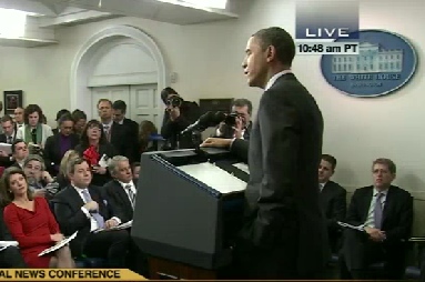ObamaPresser3-6.jpg3:30 a.m., 17 Esfand/March 7 At the White House Tuesday afternoon, U.S. President Barack Obama gave a press conference that turned repeatedly to the question of Iran and how to address the West's concerns that there may be a military dimension to the Islamic Republic's nuclear program. Addressing criticisms from the Republican presidential candidates of his administration's efforts to ensure the Iranian regime does not develop a nuclear weapons arsenal, he stated,