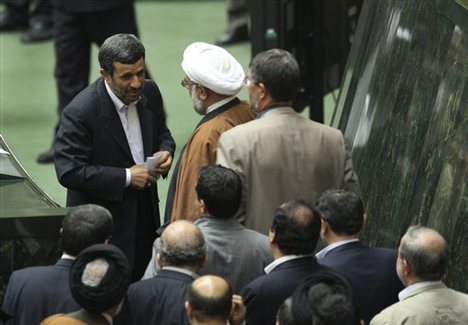 AhmjadBahonar.jpg5:50 a.m., 19 Esfand/March 9 After many months of effort by a group of legislators to bring President Mahmoud Ahmadinejad to the Majles floor for questioning, it seems that that he will finally be obliged to appear before the Iranian parliament next Wednesday. The announcement was made by Deputy Majles Speaker Mohammad Reza Bahonar (seen here with Ahmadinejad). According to the semiofficial Mehr News Agency, the decision to compel the president to appear was made "after MPs were not convinced by the answers provided by the president's representatives at a meeting held to discuss the reasons behind irregularities by the administration." We've provided links for more detail on some of the many issues Mehr reports that Ahmadinejad will be asked to address: