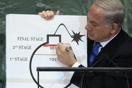 A Magic Marker moment to remember: Israeli Prime Minister Benjamin Netanyahu employs sophisticated visual means to help convince his audience at the U.N. General Assembly that the Islamic Republic of Iran is on the verge of building a nuclear bomb, and exactly where the "red line" must be drawn.