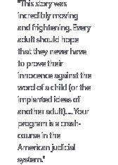 One Little Rascals defense attorney went even further: "Our Rascals defendants are free," he wrote FRONTLINE, "because of you."