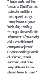 The tremendous public response to the film didn't surprise religious studies professor L. Michael White, the project's principal historical advisor. White recalls believing from the outset that the truly intriguing story lay not in the quest for the historical figure of Jesus, but in the story of how the figure of Jesus came to be fashioned and refashioned throughout the development of Christianity.