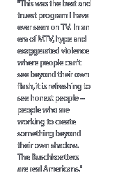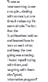 Producer David Sutherland -- who filmed more than two hundred hours of footage of the Buschkoetters over three years -- says his goal was "to make you feel that you're living in their skin. I wasn't interested in making a valentine or exposé," he recalls. "I wasn't looking for a hero -- but I ended up with two."