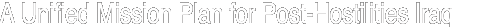 5. This Unified Mission Plan is in two parts; Part 1 sets out the overall strategy, principal goals and themes for Post Hostilities Iraq, and is designed to be enduring in nature. Part 2 explains the way in which ORHA, as it is currently configured, intends to deliver the ideas laid out in Part 1. It is designed primarily to serve as a focus for the efforts of all ORHA staff, but is also of clear relevance to a wide range of other military and civil organizations operating within Iraq, and externally to other governments and international organizations.