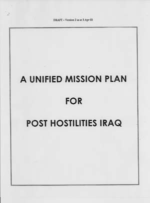 This is part of an April 2003 draft of a postwar plan written for ORHA, with an introduction by Jay Garner in which he notes: "History will judge the war against Iraq not by the brilliance of its military execution, but by the effectiveness of the post-hostilities activities."
